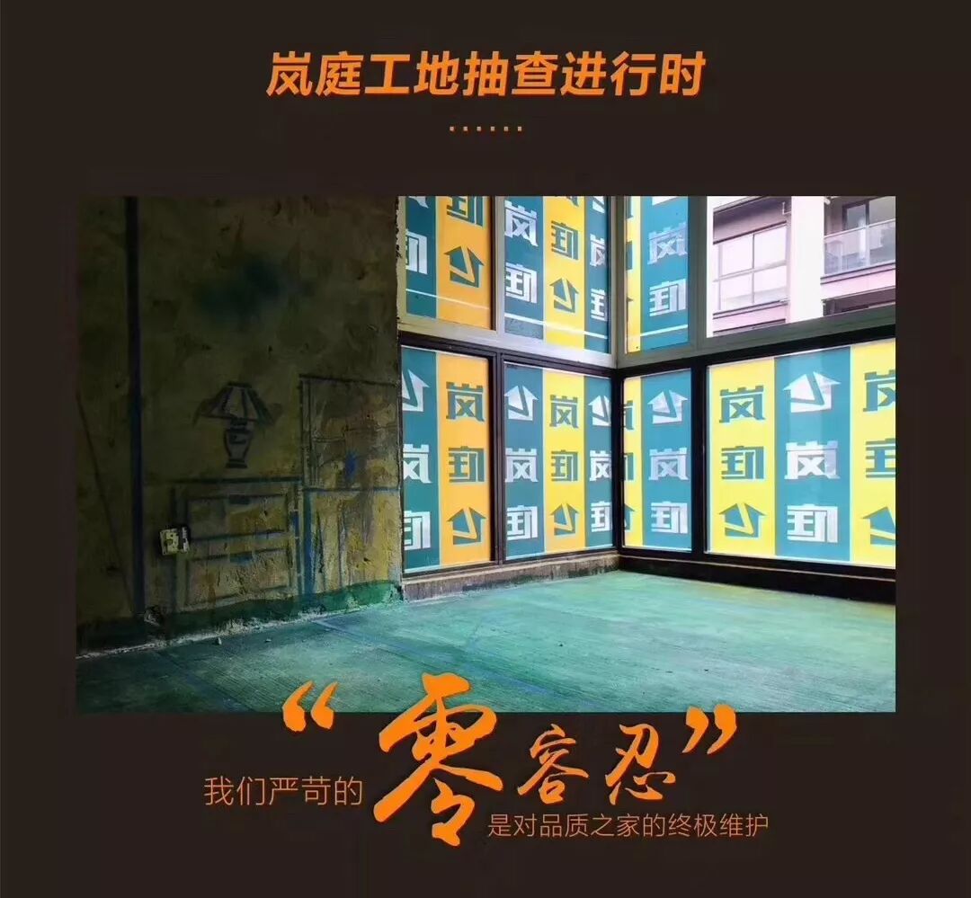 在岚庭,每个节点验收确认无误后才会进行下一环节。正常情况下为了不让客户麻烦,客户只用参加水电隐蔽验收和完工验收。但如果您有需要每一个环节都要参与,我们也会提前联系您一起到现场进行验收。